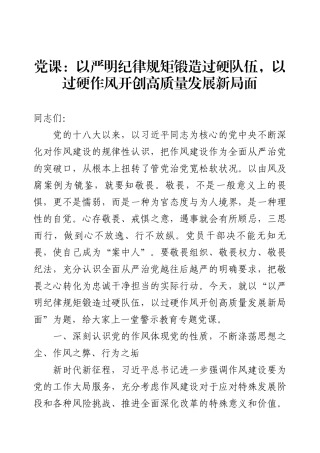 党课:以严明纪律规矩锻造过硬队伍,以过硬作风开创高质量发展新局面.docx