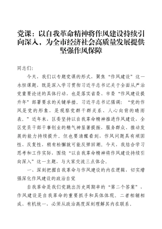 党课:以自我革命精神将作风建设持续引向深入,为全市经济社会高质量发展提供坚强作风保障.docx