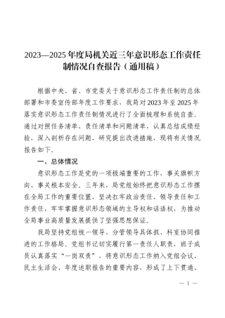 2023—2025年度局机关近三年意识形态工作责任制情况自查报告(通用稿).docx