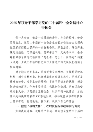 2025年领导干部学习党的二十届四中全会精神心得体会.docx